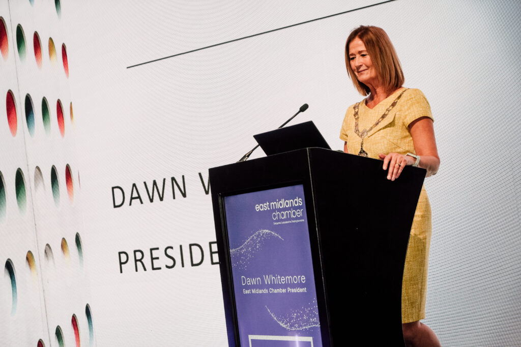 The evening began with a heartfelt address from East Midlands Chamber President Dawn Whitemore, who shared a moving story of perseverance, of coming from humble beginnings and building a life of purpose through grit, determination, and the support of loved ones. Her words reminded us all of the power of resilience and community. And her powerful message “What if the very thing you fear is actually the key to unlocking your greatest success” will resonate with all of us.